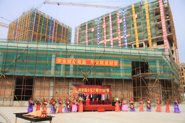 由我公司承建的位于牡丹江市陽明區(qū)裕民路與光華街之間的裕華園小區(qū)15、16號樓工程。于2015年10月8日上午舉行了封頂儀式。該工程于2015年4月15日開工,2016年9月30日竣工。工程建筑面積41555.63平方米,建筑為框剪結(jié)構(gòu),地下1層,商服2層,3-17層公寓住宅。工程由我公司第一項目部負責日常的施工管理。工程質(zhì)量目標設(shè)定為省安全文明標準化樣板工地、省結(jié)構(gòu)優(yōu)質(zhì)獎、龍江杯。