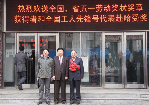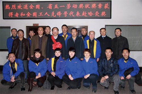 4月27日晨,市總工會主席姚壽鵬、市政府秘書長周景隆在市總工會門前為榮獲全國、省五一勞動獎(jiǎng)的全體人員送行,并合影留念。