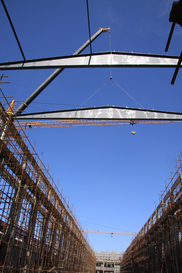 為確保實(shí)現(xiàn)年度目標(biāo),公司開(kāi)展了施工生產(chǎn)百日會(huì)戰(zhàn)活動(dòng)。9月10日,在牡丹江恒豐紙業(yè)1.7萬(wàn)噸圣經(jīng)紙工程廠房現(xiàn)場(chǎng),呈現(xiàn)出一派繁忙的施工景象,廠房?jī)?nèi)墻體砌筑和設(shè)備基礎(chǔ)正在抓緊施工。項(xiàng)目負(fù)責(zé)人丁一介紹說(shuō),這個(gè)項(xiàng)目我們是總承包,廠房建筑面積1.3萬(wàn)平方米,三層框架結(jié)構(gòu),今年四月份開(kāi)工,現(xiàn)在廠房已經(jīng)完成60%的工程量,今天開(kāi)始吊裝鋼屋架,預(yù)計(jì)5天可以吊完。我們現(xiàn)在已經(jīng)倒排工期,在保證質(zhì)量的前提下,千方百計(jì)搶進(jìn)度,確保創(chuàng)省優(yōu),力奪“龍江杯”質(zhì)量獎(jiǎng),向業(yè)主遞交一份滿(mǎn)意的答卷。