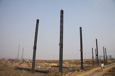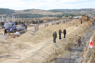 在牡丹江市郊東北、G11國(guó)道西側(cè),有一處破土動(dòng)工的工業(yè)園區(qū),這里彩旗招展,機(jī)械隆隆,此地就是牡丹江市對(duì)俄經(jīng)濟(jì)開發(fā)區(qū)光伏產(chǎn)業(yè)園區(qū)建設(shè)現(xiàn)場(chǎng),數(shù)家施工企業(yè)在這塊十幾萬平方公里的戰(zhàn)場(chǎng)上相互比拼。由我公司承建的光伏園區(qū)8號(hào)標(biāo)準(zhǔn)化廠房,正以前所未有的速度加緊施工。該工程建筑面積為20880平方米,于2011年8月15日開工。